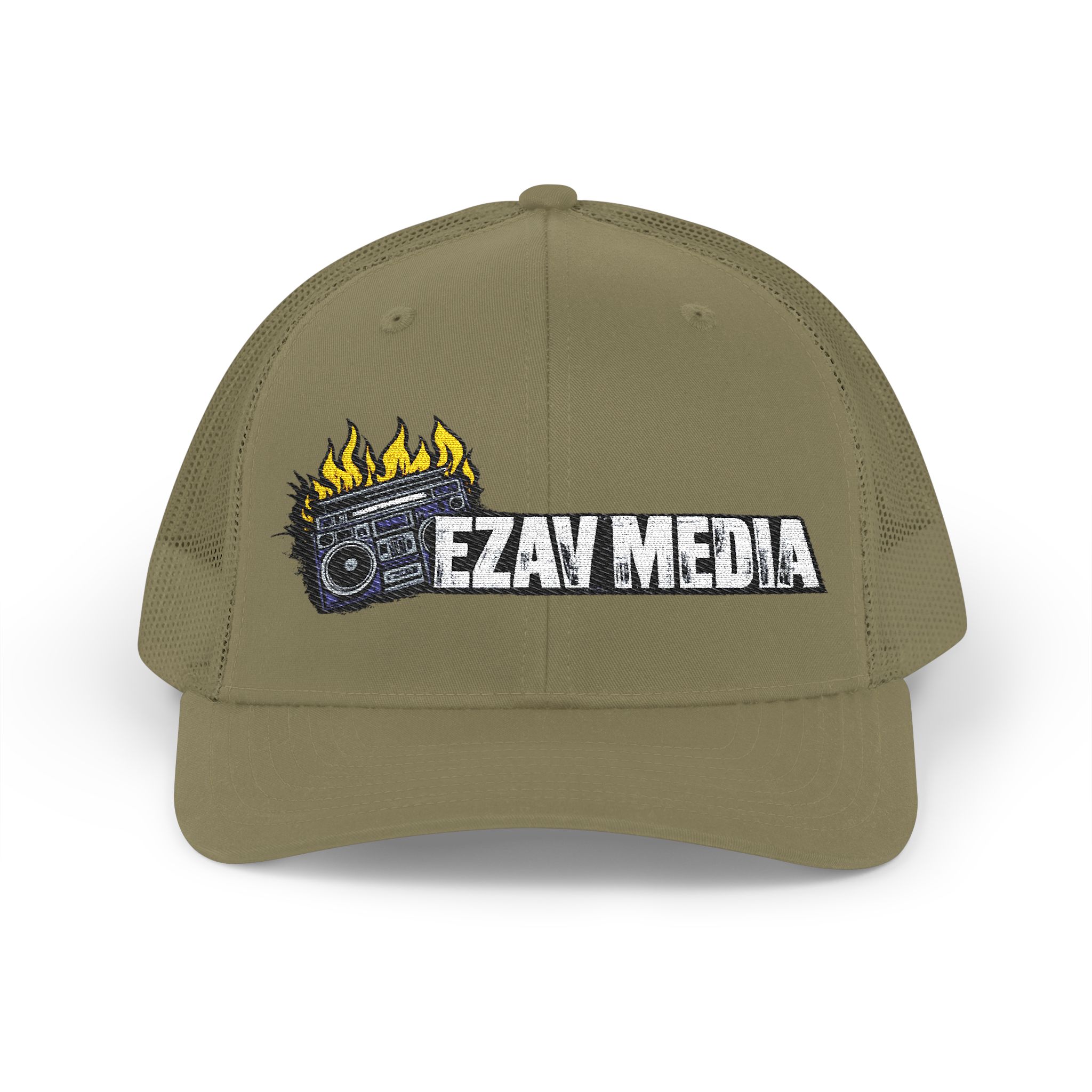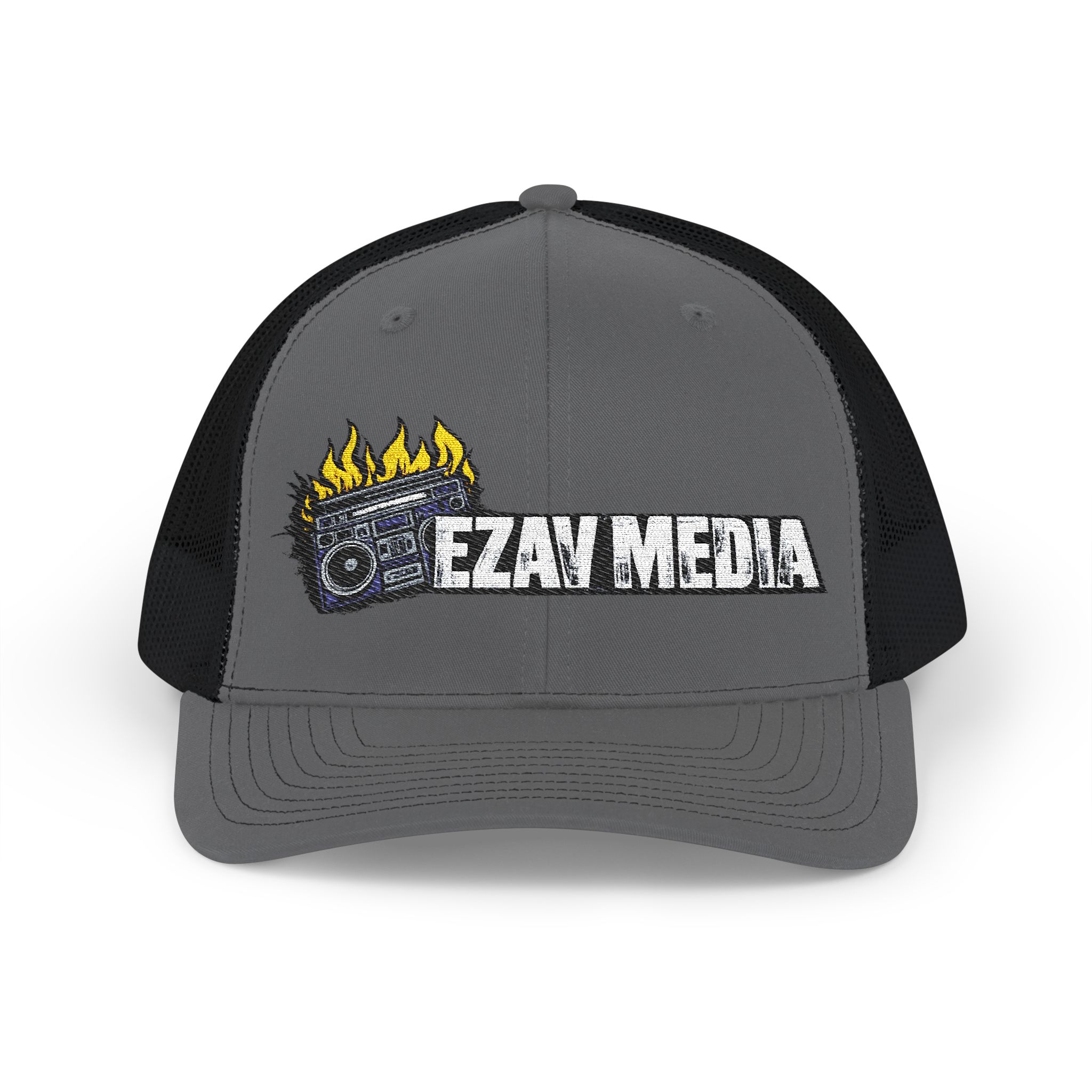This is the cap you wear when you want your look to say enough without saying too much. The EZAV MEDIA Trucker Cap comes with a clean, embroidered “EZAV MEDIA” logo that hits crisp and permanent—no flimsy print, no shortcuts. It’s structured, breathable, and built for daily rotation, whether you’re on the move, on set, or off the clock.